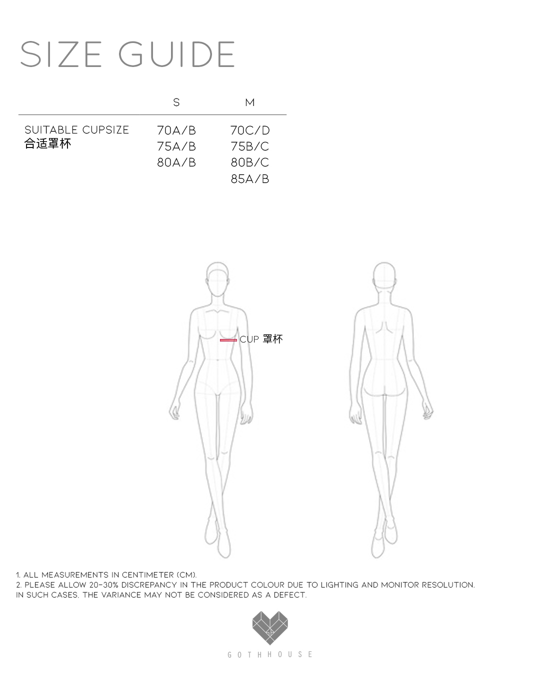 S Size: Suitable Cupsize 70A/B , 75A/B , 80A/B