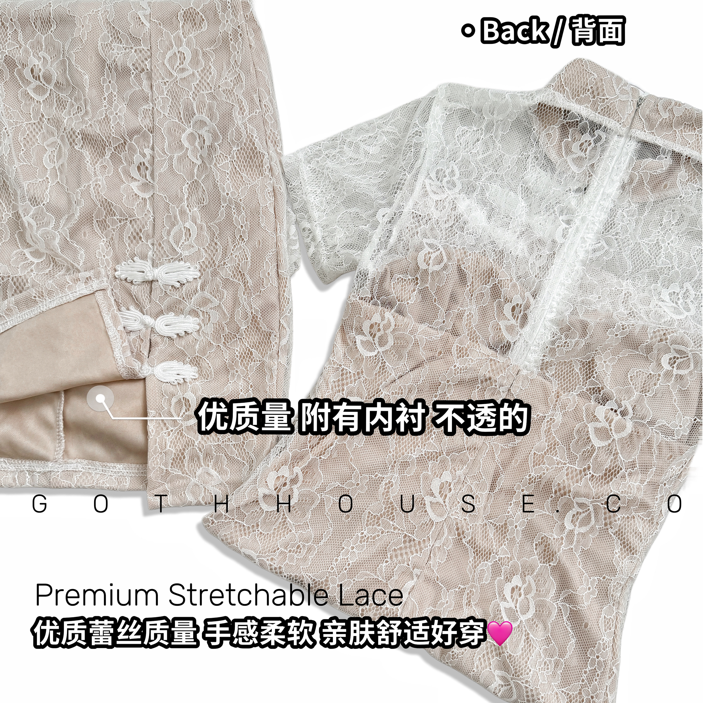 优质版 弹性蕾丝面料 + 弹性涤纶面料